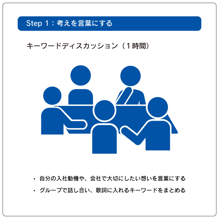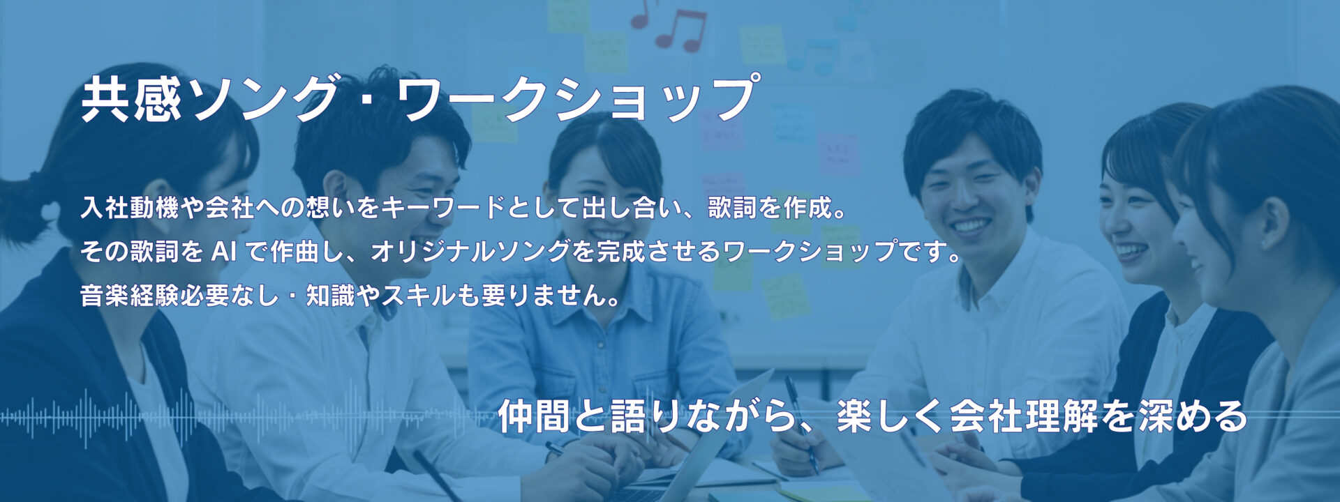 共感ソング・ワークショップでは、入社動機や仕事への思いを言葉にし、仲間と歌にまとめて共有します。